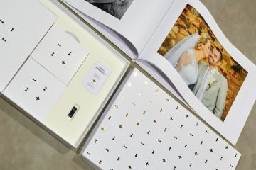 Uvnitř svatebního boxu naleznete velkoformátovou fotoknihu opět s čistým bílým designem s fotkami velkými tak, že ani vaši prarodiče nebudou při prohlížení potřebovat brýle na čtení :-) . V tištěném formátu se pak v samostaném obalu nachází cca 30 fotek ve formátu 18 x 27 cm. Dále pak fotky v digitální podobě na dvou ks DVD a v plném rozlišení pak na flash disku. Závěrem doplněno moji vizitkou s kontaktem.